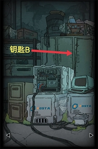 用锤子敲击右侧铁柜,使钥匙B和一块可拆的铁柜门板震落下来