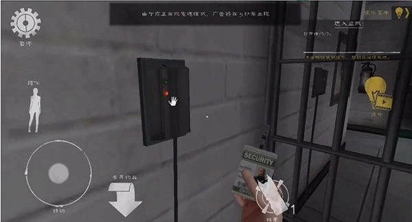 5、拿着警官证回到楼下,找到带刷卡功能的门禁系统,为进入新区域做解锁准备