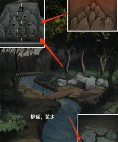 1、进入后,需要输入石灯密码,密码顺序为1224,输入正确打开后即可获得道具——绳子。