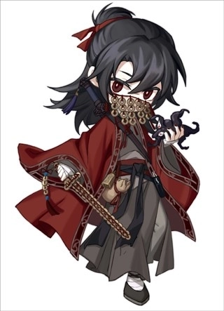 他常身着红色道袍——这道袍最初本是青色,因沾染血迹才变为红色,此后更换的也全是血红色;他还佩戴着铜钱面具来遮掩自己的身份,后来诸葛渊将心浊纺锤赠予他,这纺锤便成了他的标志性装备。