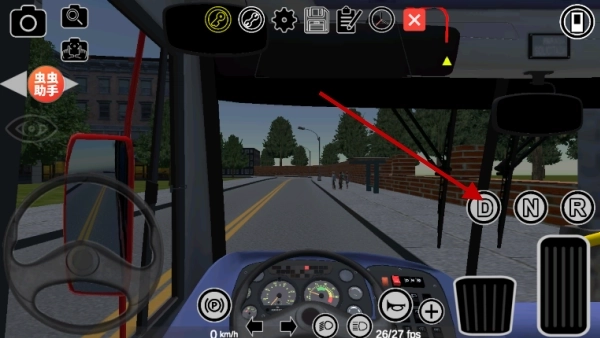 2、切换到第一人称模式后,留意观察右侧虚拟按键区域里的档位控制——D档是用来前进行驶的,N档属于空挡状态,R档则是用于倒车操作的,只有合理切换档位,才能实现平稳起步。
