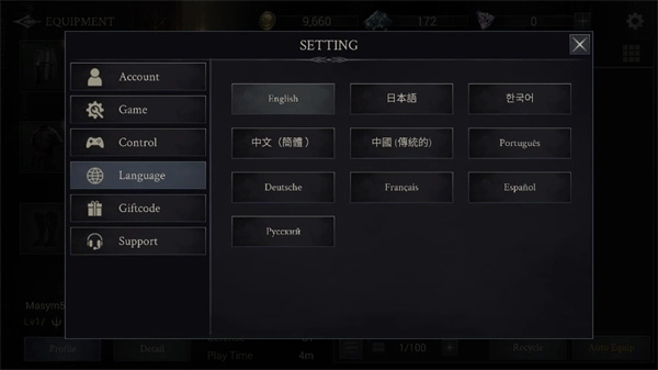 2、首次运行需创建角色,初始界面为英文状态;