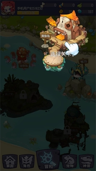 4、完成前期准备工作后,点击主界面下方的「冒险」按钮,即可进入关卡选择页面,接着根据难度和奖励情况,挑选出与当前战力相匹配的挑战任务。