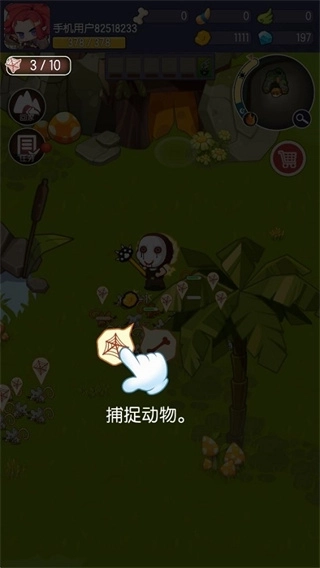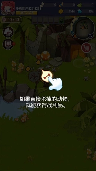 6、要是屏幕上出现「骨头」标识,就说明可以直接对目标动物发起攻击,成功猎杀之后会掉落材料、金币或者其他的战利品。