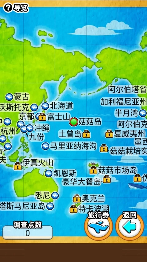 只要收获菇菇,就能开启菇菇调查啦!调查进度不断推进的同时,新的调查地点也会逐一解锁哦!像澳洲绚丽的珊瑚礁、美国广袤的山脉等地,快一起奔赴这些有着多样环境与独特文化的土地展开调查吧!