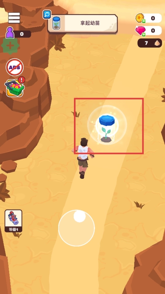 3、操控角色移动以获取幼苗,达成【拿起幼苗】的任务。
