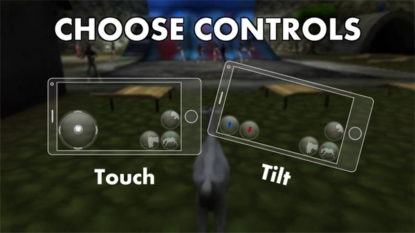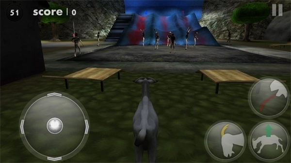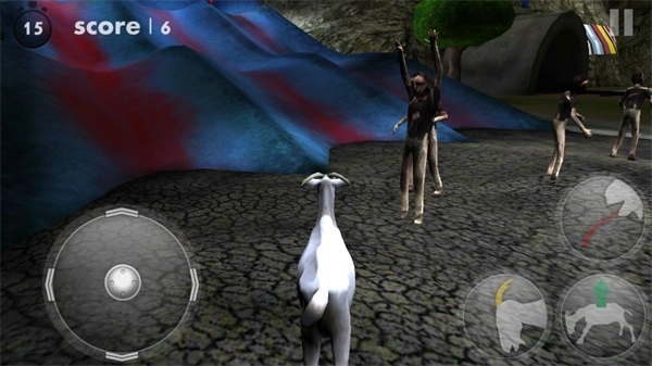 3、借助虚拟摇杆操控山羊移动,在城市的街头巷尾自由穿行,搜寻目标以及能够互动的元素。
