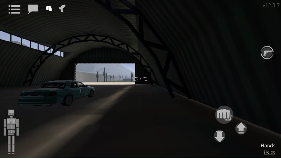 3、点击右侧的“手枪”按钮即可拿枪,这能使角色切换至持枪状态,中心位置用于开枪,而“+”号则可新增靶子角色。