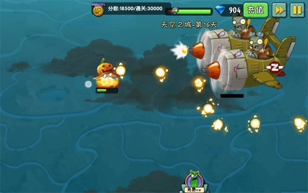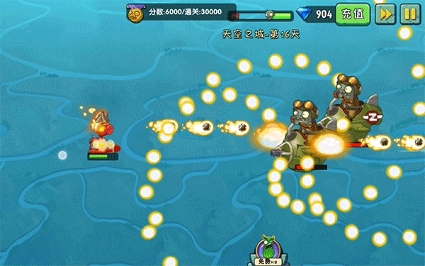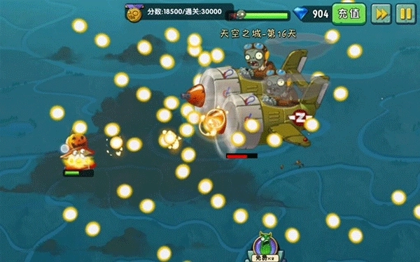2000在2000分到8000分的区间内,植物会进化成火焰豌豆射手。这一阶段的挑战难度最高,原因在于接近尾声时会有两架小飞机同时登场。应对双机并行的局面往往需要耗费大量时间,要是缺乏娴熟的躲弹技巧,很容易在此处损失大量生命值,导致不少玩家都卡在这一关卡难以继续推进。