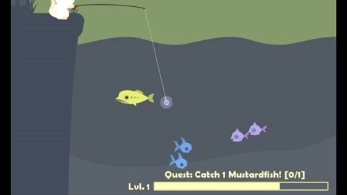 1、通过滑动手机屏幕,把鱼钩抛进水中钓鱼;