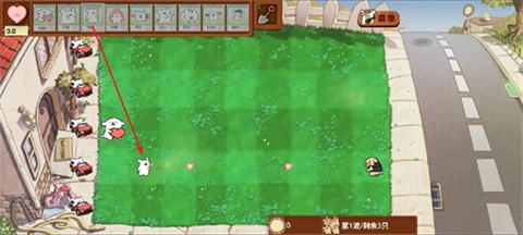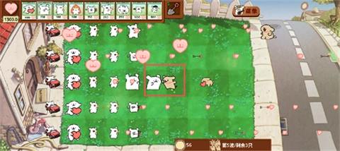 手里捧着爱心的是爱心小狗,它能产出用来购买小白的爱心,就好比《植物大战僵尸》里的向日葵。