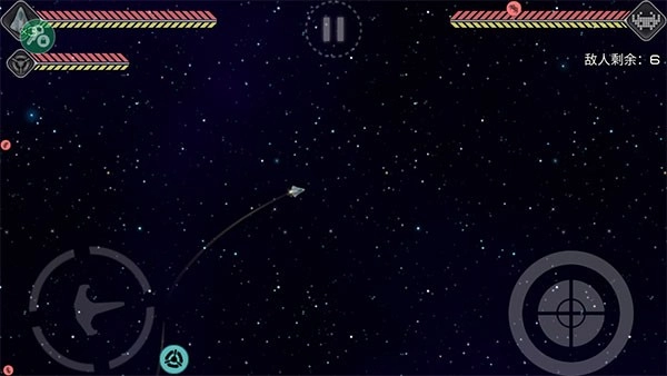 1、首先进入《事件地平线边境》游戏,通过滑动左侧轮盘即可控制战机的移动方向。
