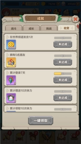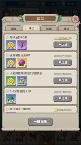 当勇者等级提升至2级时,成就玩法将正式解锁。在原始大陆的冒险旅程中,只要达成特定的阶段目标,勇者就能领取对应的成就任务,进而获得丰厚的奖励。