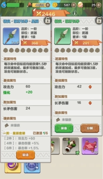 精良狼牙长矛星辰:具备基础强化效果,同时享有星辰系列套装的羁绊增益。集齐2件星辰套装可激活60点攻击力加成;集齐4件星辰套装能触发5%的暴击伤害提升;集齐6件星辰套装则会获得1.5%的暴击率加成。