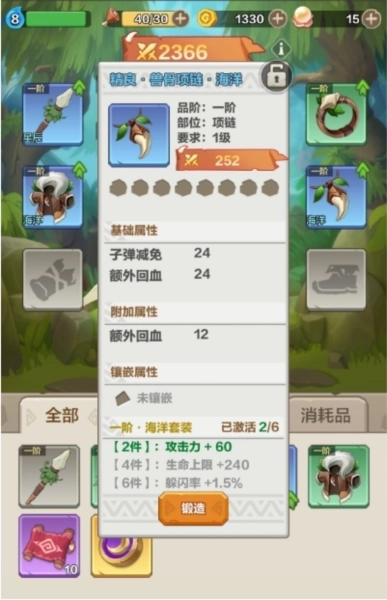 精良狼皮衣海洋:具备海洋套装的加成效果,装备2件该套装可触发攻击力提升60点;装备4件能激活生命上限增加240点;装备6件则可解锁闪避率加成1.5%。