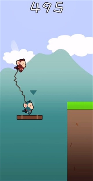 操控两只小猴子持续跳跃,留意路上的熊和鱼,避开它们就能防止自身受到伤害。