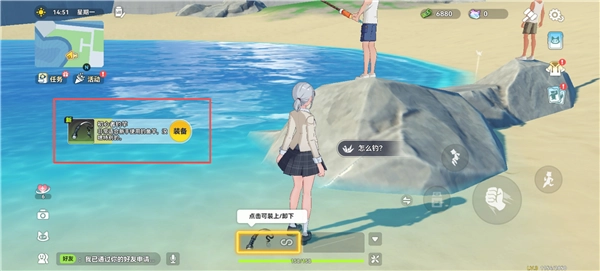 1、启动游戏后,在【钓鱼大师】任务流程里,和四平完成对话互动,就能得到鱼竿。