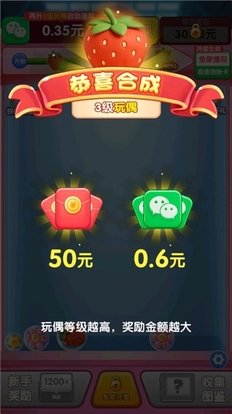 3、合成进行到特定阶段时,你就能获取红包奖励,以此激励你继续游玩。