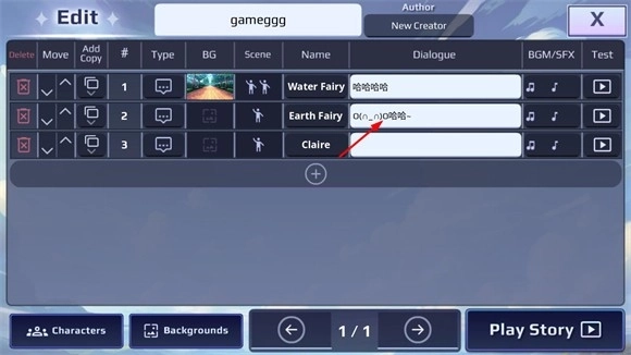 5、在dialogue界面中点击空白输入框,即可输入角色的对话内容。