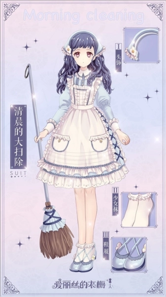 这套裙子带有明显的女仆风格元素,不过和粉白、黑白配色相比,浅蓝配白色围裙才是爱丽丝的经典搭配。这种熟悉感源于最早版本《爱丽丝梦游仙境》里爱丽丝的标志性装扮留下的深刻印象,以至于人们看到纯色蓝裙搭配白色围裙时,很容易联想到爱丽丝的形象。
