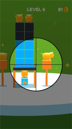 游戏的玩法轻松简单,玩家进入关卡后开启狙击模式,只需把十字准星移到指定位置就能完成狙击。考虑到让更多玩家适应,子弹射出后,被瞄准的角色会停止移动,方便玩家命中目标。