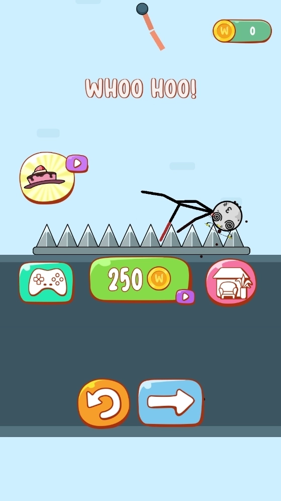 2、你可以直接把火柴人拖下来,它会被下方的尖刺扎死,不过这并非唯一的死法。
