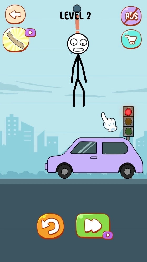 1、打开游戏,操作方式很简单,只需滑动屏幕就行,第一关的目标是设法让火柴人死亡。