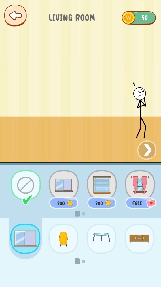 4、点击左上角的返回按钮,回到火柴人的房子,在这里你能够为火柴人选购家具来装扮它的家园。