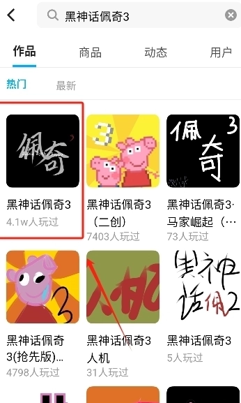2、在里面搜索框搜索黑神话佩奇游戏;