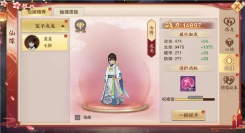 已经成功结缘的上仙,若能与情侣携手协作,将彼此的心锁都提升至30级,就能马上获取仙娃龙龙啦!