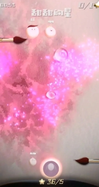 这里的诀窍在于:保持适当间距跳跃,只让一颗元宵落在墨笔上并攀升到高处,时刻准备接触墨迹。如此操作,是为了在上下方同时出现墨珠时,能同步操控上下方的元宵完成跳跃,而从高处往下跳的元宵,也能确保触碰高处墨迹的准确性。