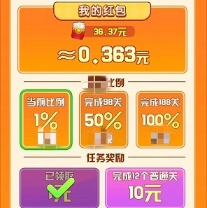 1.玩家在游戏过程中会收到红包,还有丰富的关卡任务等待你去完成。