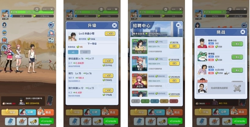 点击招聘按钮,招聘并升级美女助力,就能获取金钱(还能挑选不同的小姐姐陪伴左右哦)