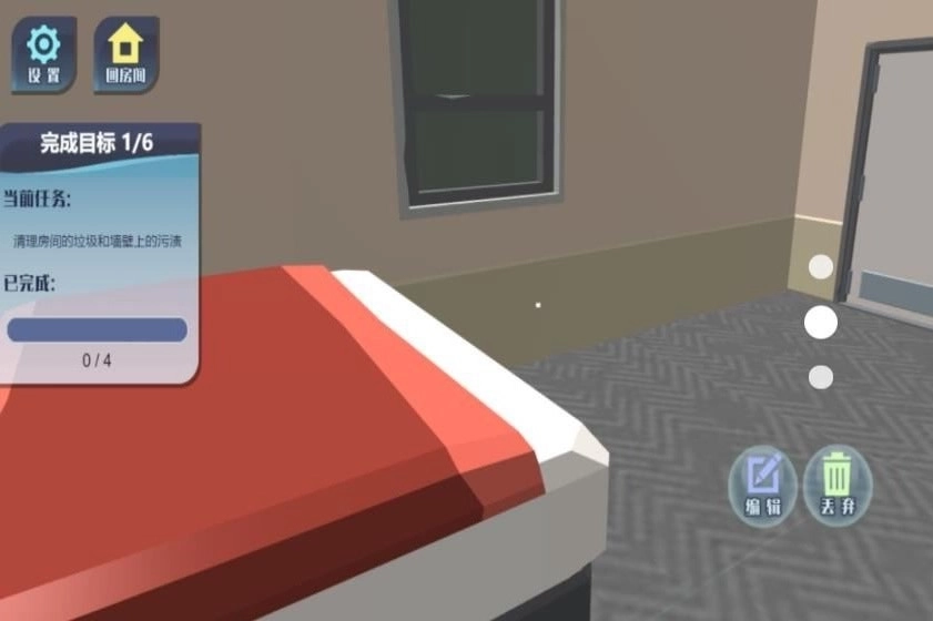 3、家里现在有些杂乱,你只需走到垃圾旁边,和它们进行交互就能把这些垃圾收拾干净了。