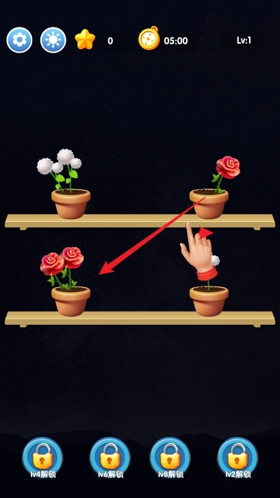 1、在每一个关卡中,玩家都得思考如何妥善规划花朵的存放位置,并且要想办法让消除效果达到最佳。
