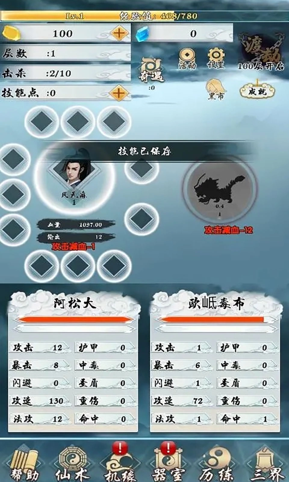 3、游戏里有各式各样不同的修真者能让玩家去收集和培养,每一位修真者都具备自身独有的技能与属性。