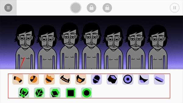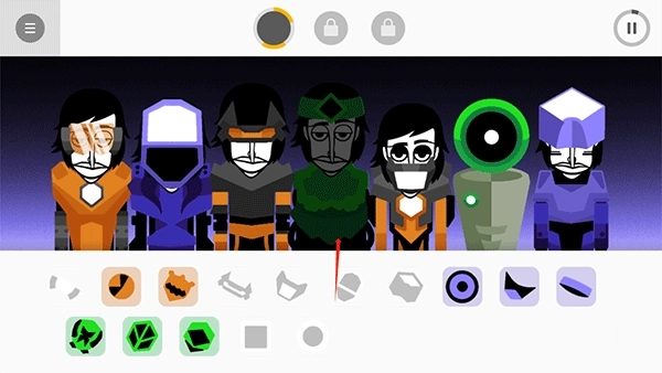 2、在游戏里,玩家得从下方的节奏盒里挑选一个节奏,然后把它拖到小人身上,这样小人就能唱歌了。