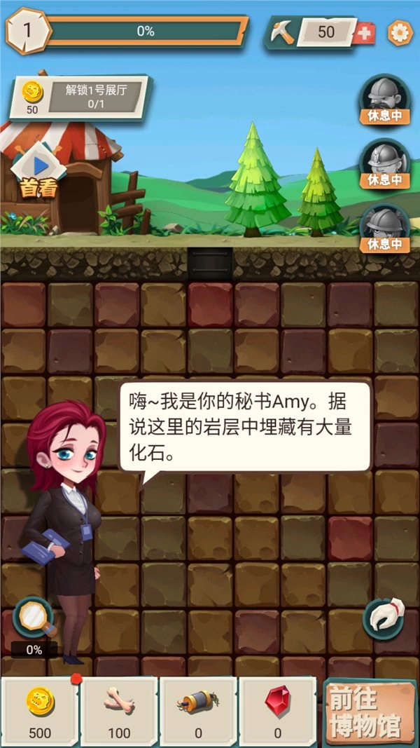 化石博物馆游戏是一款围绕化石展开的模拟经营类游戏,游戏里的岩层中藏着许多化石,你得点击岩石来挖掘,而且在游戏中还能雇佣考古人员协助挖掘化石,感兴趣的小伙伴赶紧来玩化石博物馆游戏吧~