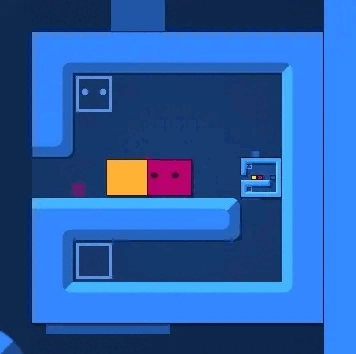 2、让盒子在角色之间移动。玩家得借助有限的位置与空间,把箱子推到规定的地方。