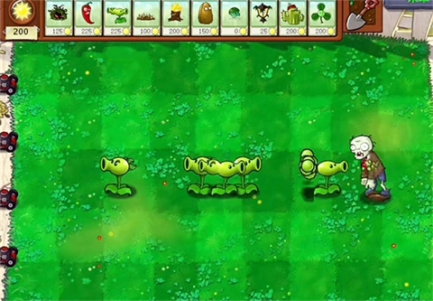 2、火爆辣椒:除了原本的火焰效果外,还会让所在列触发类似土豆雷的爆炸,并伴有星星特效;短暂延迟后,将再次释放两排辣椒的攻击效果。