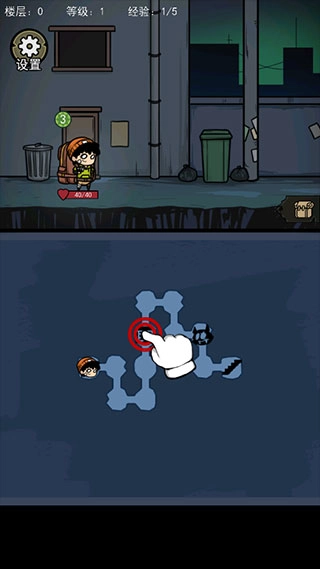 当遭遇敌人时,可打开背包,利用武器展开战斗;角色头顶的数字代表当前剩余体力,每次使用道具都会消耗体力,体力值为0时便无法继续战斗,此时将进入敌人的攻击回合。