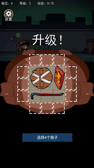 成功战胜敌人取得胜利后就能升级,还能得到给背包增加存储格子的机会。