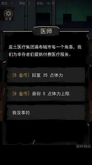 除了敌人,还存在废土医疗集团,能够为角色补充体力。