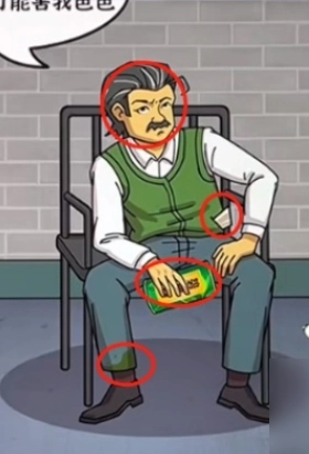 2、对绿色衣服、手中的茶罐、口袋里的欠条以及带有污渍的裤脚进行审查。