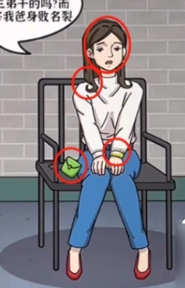3、对女生进行审查,查看其头发、袖口是否有茶渍,绿色包包需点击两次会出现户口本。