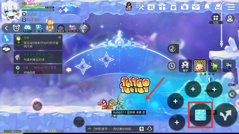 4、随后朝着敌人所在方向释放攻击技能,能显著提高打怪的效率,从而帮助完成任务并推动角色升级。