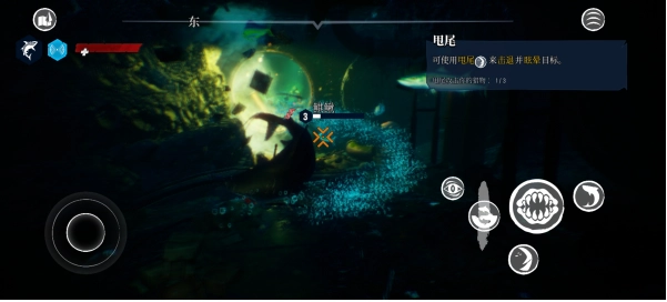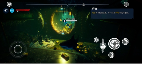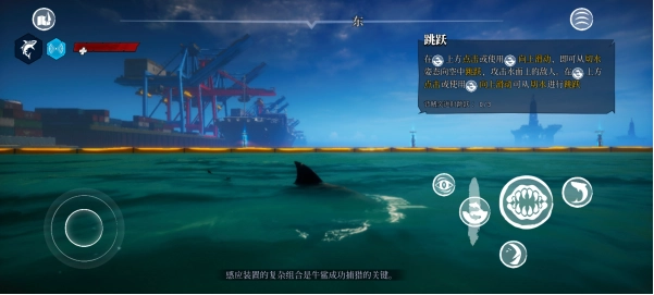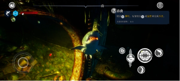 2、然后通过滑动虚拟摇杆来控制鲨鱼的游动方向。