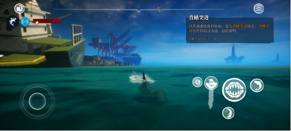 10、点击撕咬下方的按钮,就能发动“背鳍突进”技能,借助它可以在陆地上展开高速冲刺。