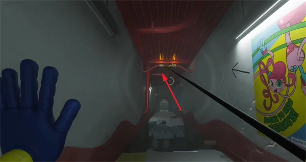 2、继续径直往前走,接着向右边行进,再用手掌抓住上方的把手,就能跳过去了。