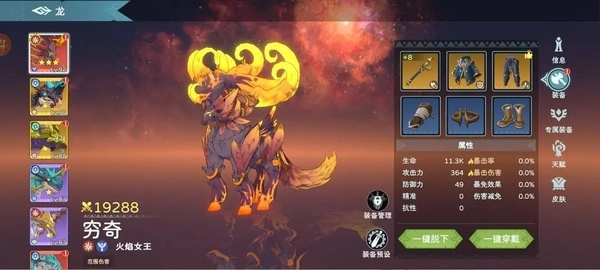 穿戴装备时,无需考虑龙的品质和等级,即便是0级的初始龙,也能配备史诗品质的装备。